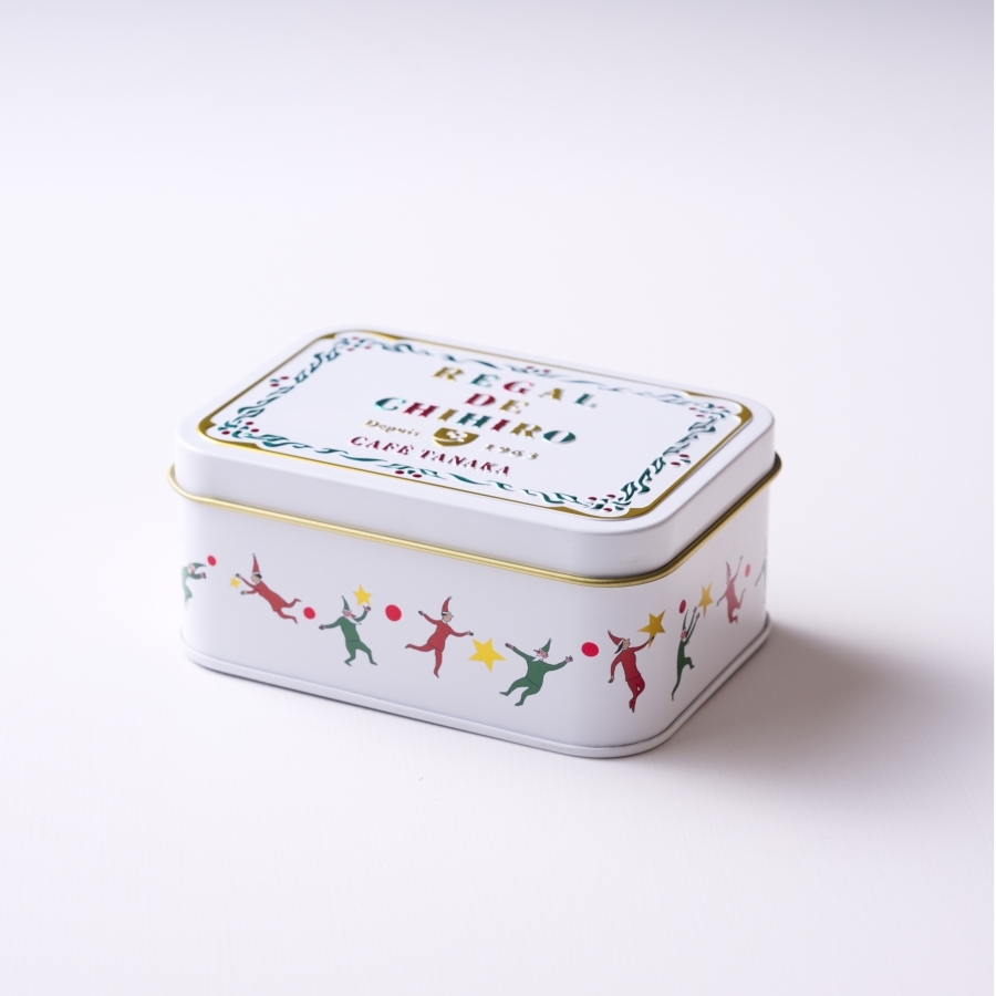 カフェタナカアドヴェントカレンダーのデザインを手掛けるフランス人イラストレーター、“ジャン・ヴァンサン・セナック(Jean-vincent Sénac)”氏によって描かれたサンタの妖精たちが舞うキュートな缶。